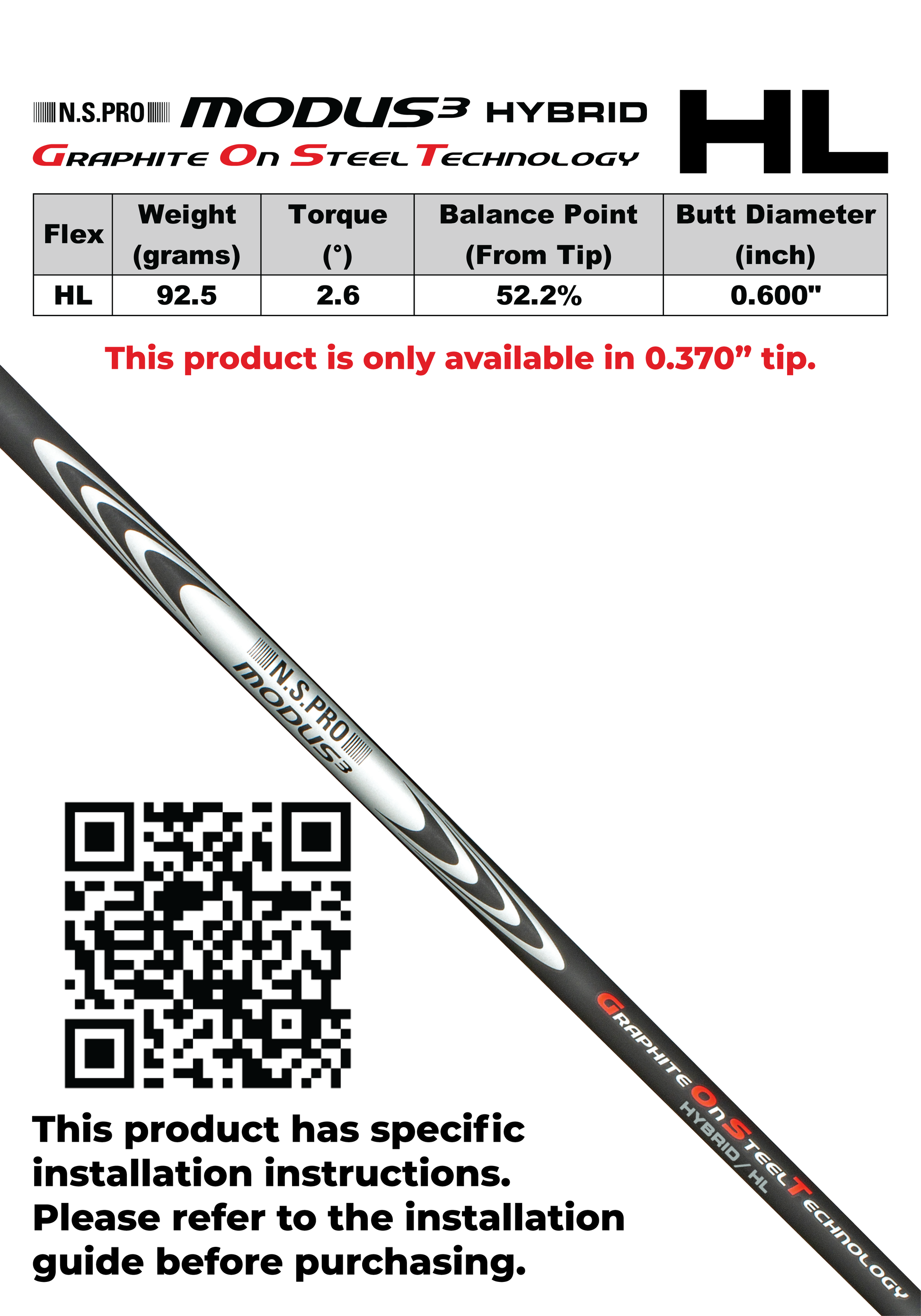 Five years since launch, feedback from skilled, athletic amateur golfers — especially those with driver head speeds under 95 mph — has driven demand for even more forgiveness and launch. So, we went back to the drawing board. Using ultra-light steel, strategically layered graphite, and an advanced adhesive design, we created another model in the N.S.PRO MODUS3 HYBRID family, the HYBRID HL (High Launch). The result: a shaft built specifically for mid speed players that naturally bridges the gap between your high-launch woods and your lower-launch irons. At product launch, the HL will be offered in a .370” parallel tip size. Parallel tip shafts are compatible with most hybrid heads and OEM adapter sleeves, but always confirm specifications when installing into utility or driving iron heads, as this product is not compatible with tapered hosels.