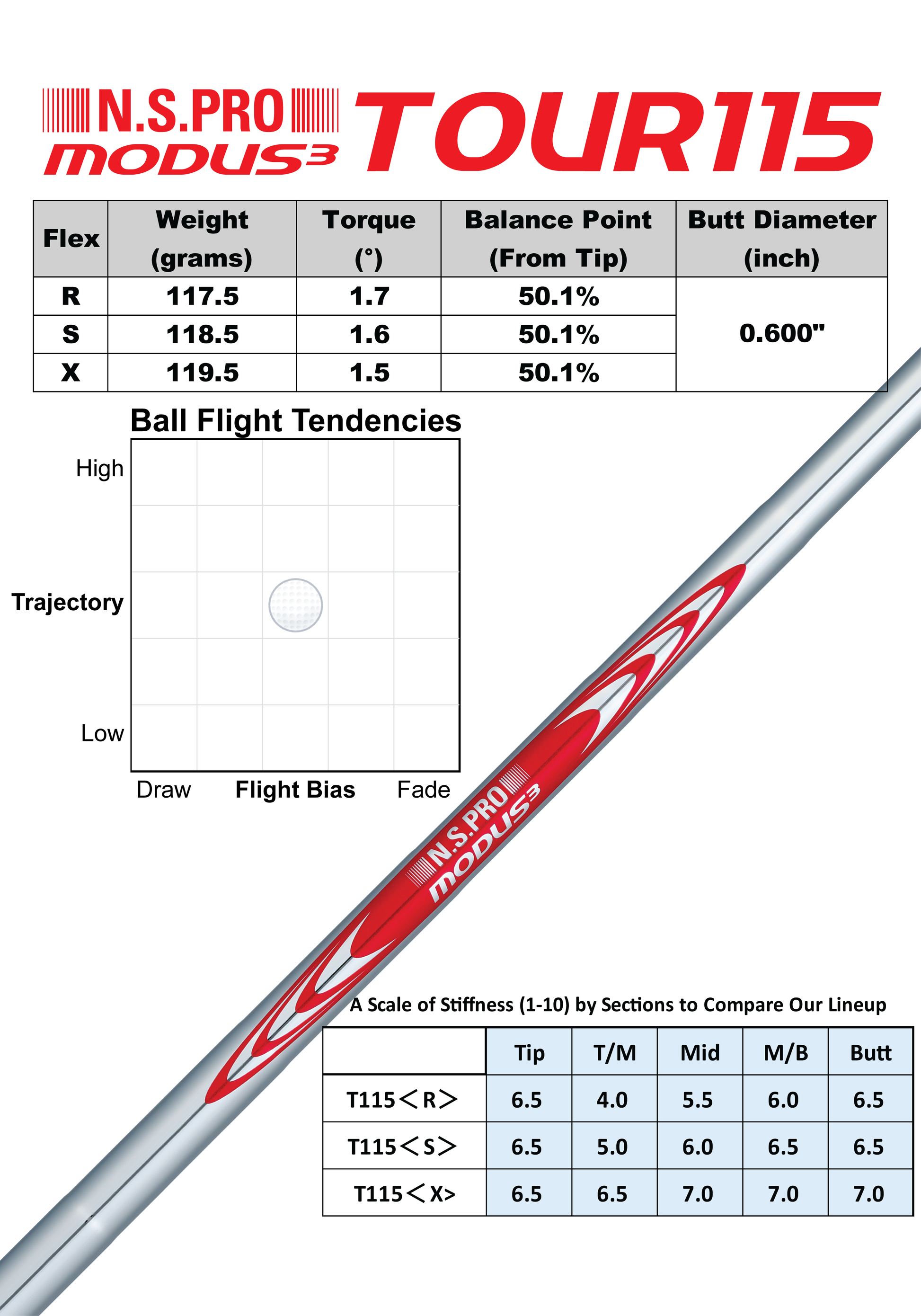 The 5 Series indicated by the 5 at the end of the model name. (TOUR 105, 115, 125) Feature bend profiles that our similar to traditional steel shafts. Perfect for those that want a familiar feel with the Nippon difference.