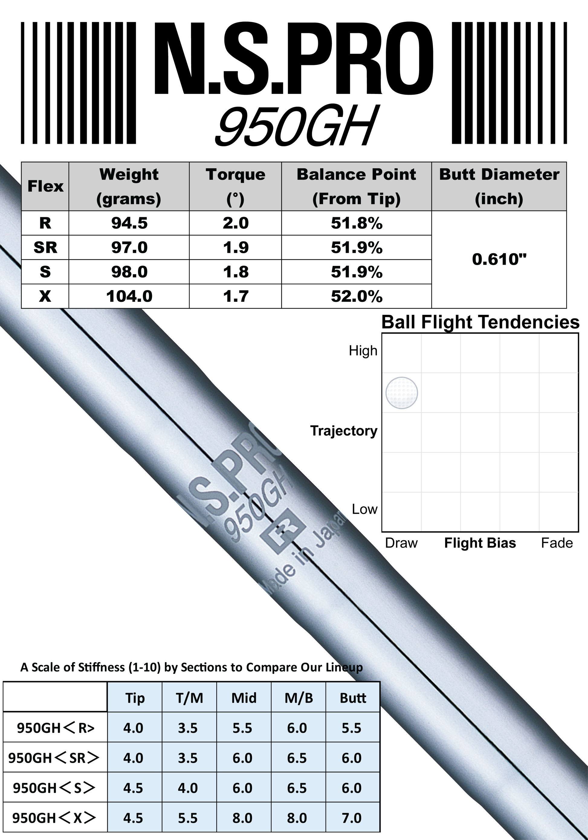 The legacy of the GH line began with the 950GH the original game-changing lightweight steel shaft. Its name, "GH," stands for "Great Hit." This model laid the foundation for lightweight steel.