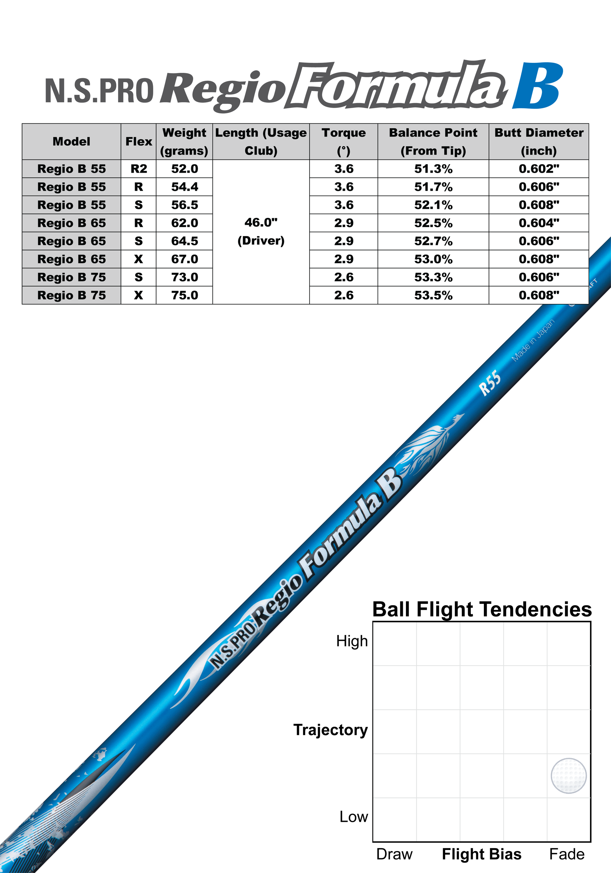 The most neutral-feeling shaft in the series. The MB (Mid-Balance) model delivers smooth, balanced flex characteristics with no harsh transitions. It’s the most universal of the Regio shafts and is perfectly suited for players who want minimal interference from their equipment.