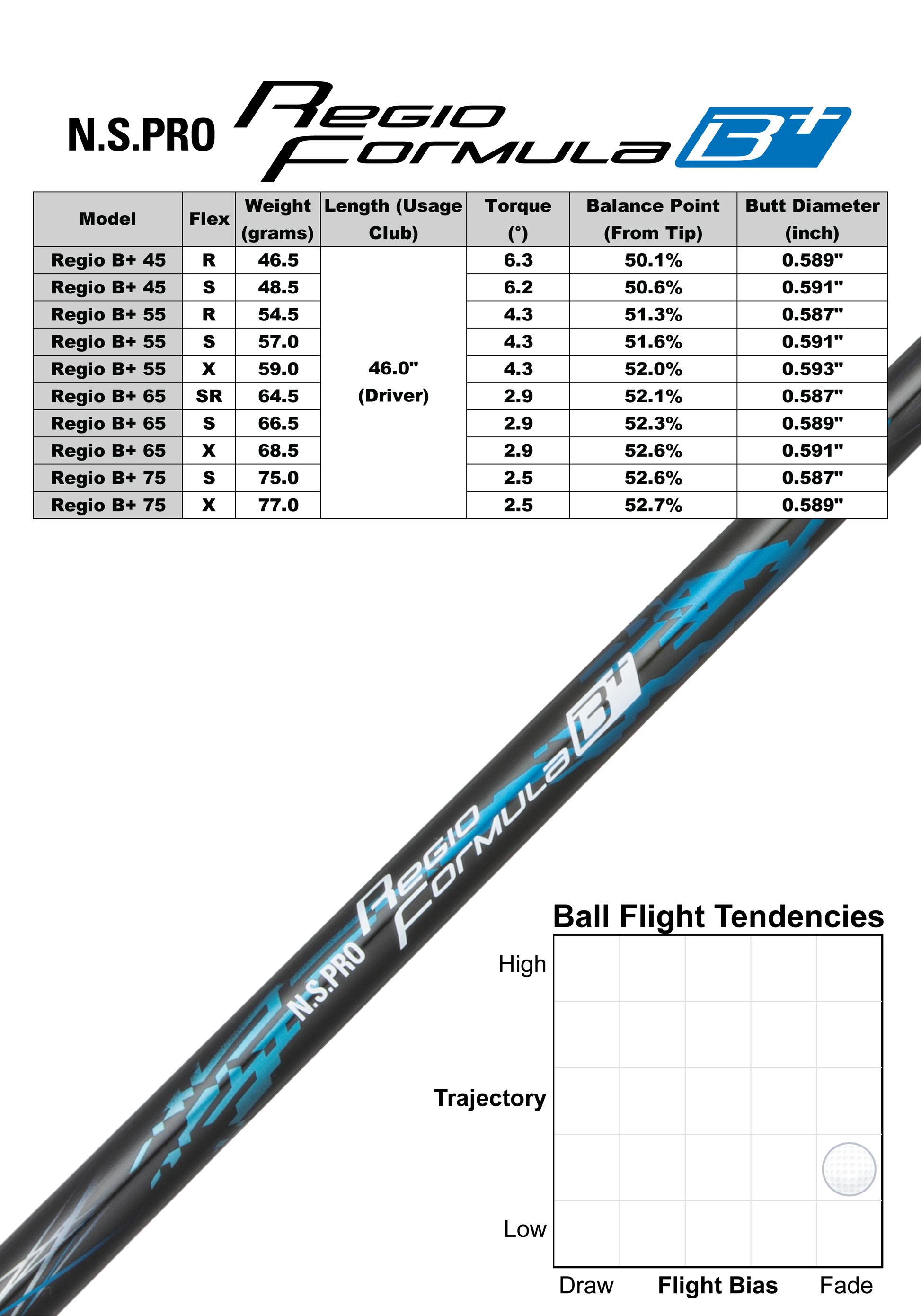 Low-spin trajectory for players who launch too high. Featuring a stiff tip and soft mid-section, the B series was designed to reduce spin and lower ball flight. The B+ produces the lowest trajectory and is recommended for players who generate excess launch or spin.
