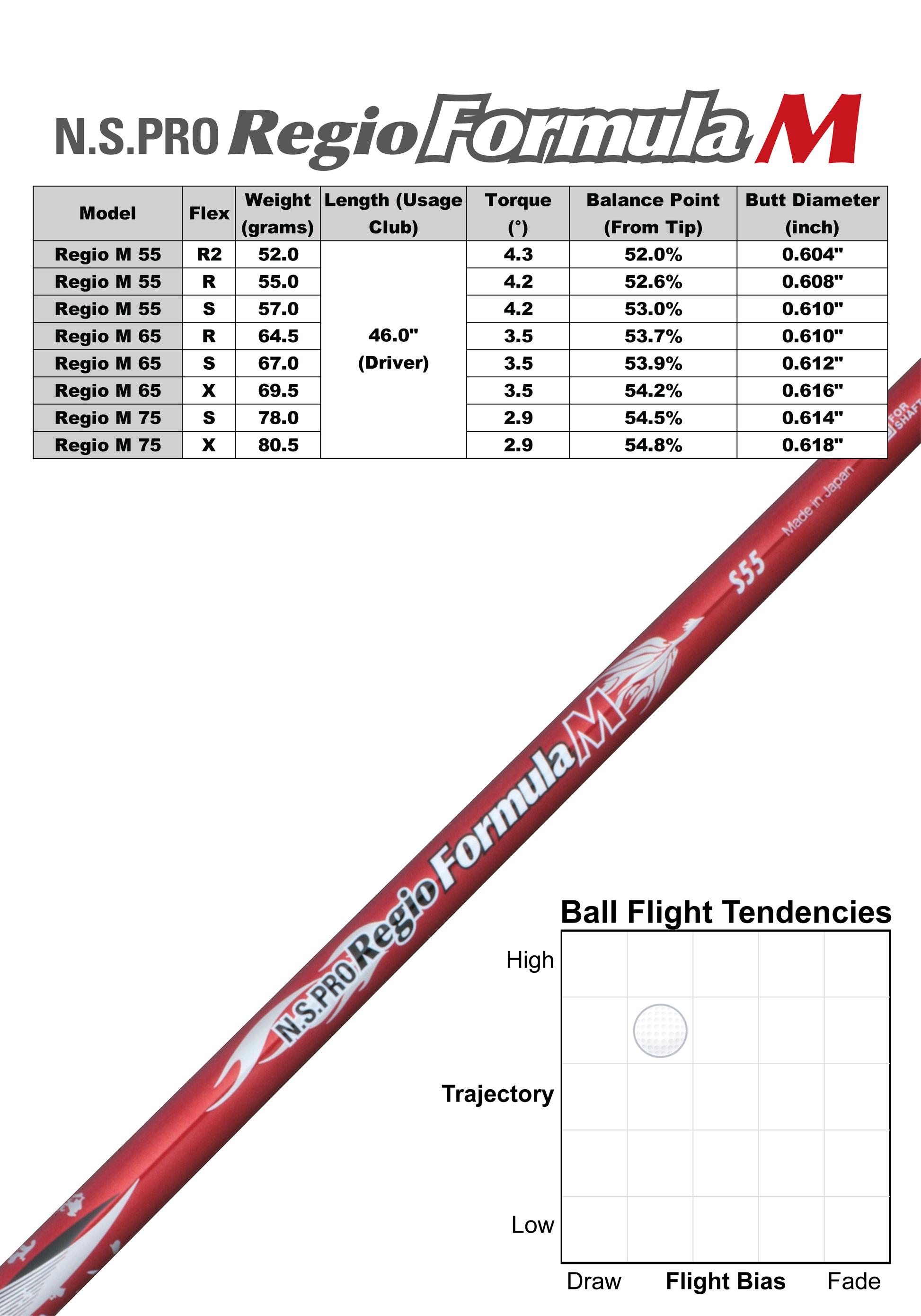 The most neutral-feeling shaft in the series. The MB (Mid-Balance) model delivers smooth, balanced flex characteristics with no harsh transitions. It’s the most universal of the Regio shafts and is perfectly suited for players who want minimal interference from their equipment.